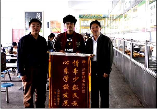 信陽(yáng)師范學(xué)院新疆籍學(xué)生代表向后勤服務(wù)總公司贈(zèng)送錦旗